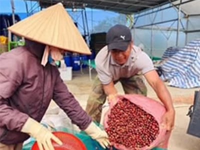 現在、世界中に流通しているコーヒーの品種は、大きく分けて「アラビカ種」と「ロブスタ種」が流通されており、ごく少量ながら「リベリカ種」が流通されております。これら三種をコーヒーの三大原種と呼ばれております。その中で栽培は難しいが味の部分で評価が高い「アラビカ種」が6割から8割程度のシェアを誇り普段よく喫茶店やカフェ等で飲まれているコーヒーは、ほぼこの「アラビカ種」のコーヒーです。残り3割から4割程度のシェアを「ロブスタ種」が流通されており、主にインスタントコーヒーや缶コーヒーなどの工業用コーヒーの原料として流通されております。「リベリカ種」は生産量が非常に少なく、流通シェアとしては約1%程度で、商業ベースでの流通はほとんどされてないのが現状です。アラビカ種に比べ品質で劣るとされているロブスタ種ですので、アラビカ種よりも安値で取引されることが多く、生産者のモチベーションも上がらず適当に作られている風潮の中で、ここ数年、最高品質のロブスタ種のコーヒーを作れば高値で取引するという流れの中で、CQIの認定するQグレーダーによる鑑定で、80点以上の評価を受けたものを「ファインロブスタ」と呼び、風味豊かでシングルのホットでも楽しめる高品質のロブスタが流通されるようになりました。今回ご紹介のベトナムコーヒーは、クホ族の熱心なコーヒー生産者パット氏と、ランビアンに移住した日本人の生産者(山岡清威氏)が「ランビアンコーヒープロジェクト」を結成し、世界一のコーヒーを目指して研鑽を重ねたところ、瞬く間に世界トップレベルの仲間入りを果たしました。このコーヒーは、ロブスタ種特有の力強い苦味やコク、麦を焦がしたような香ばしい風味を残しつつも、アナエロビック製法から感じ取れる赤ワインの様な奥深く複雑な風味とクリーンな後味が合わさり、ロブスタ種の小麦を焦がしたような香ばしい特徴をおさえつつ、個性的で面白い風味のコーヒーになっております。